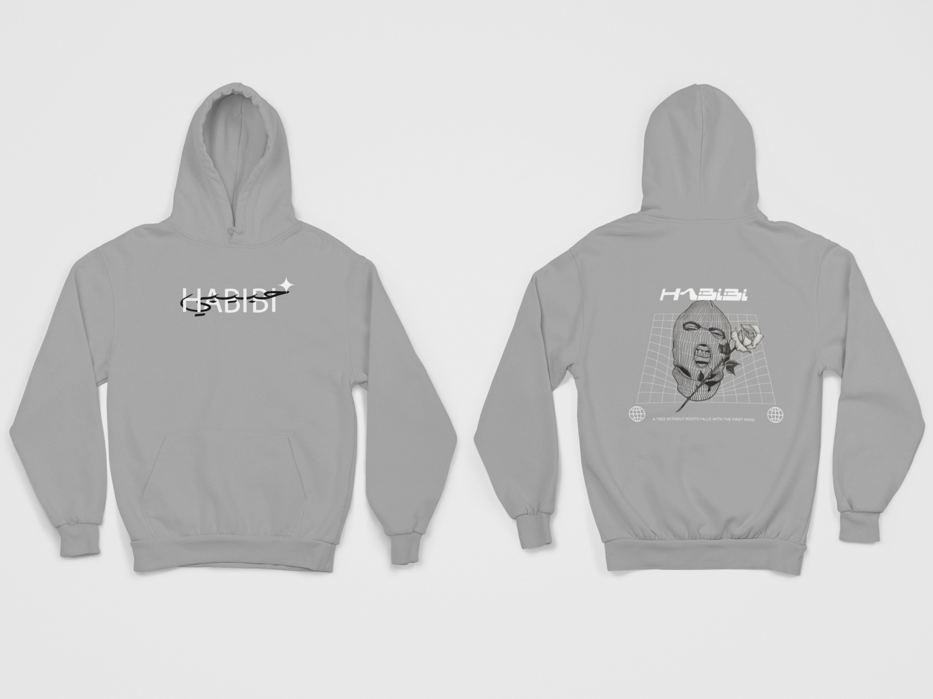Introducing the 'Habibi' hoodie: a cozy, oversized hoodie with the Arabic word 'Habibi' (meaning 'my beloved') stylishly printed on the front in bold, modern typography. Perfect for adding a touch of warmth and affection to your everyday look, this hoodie combines comfort with a heartfelt message, making it ideal for both casual wear and expressing good vibes.