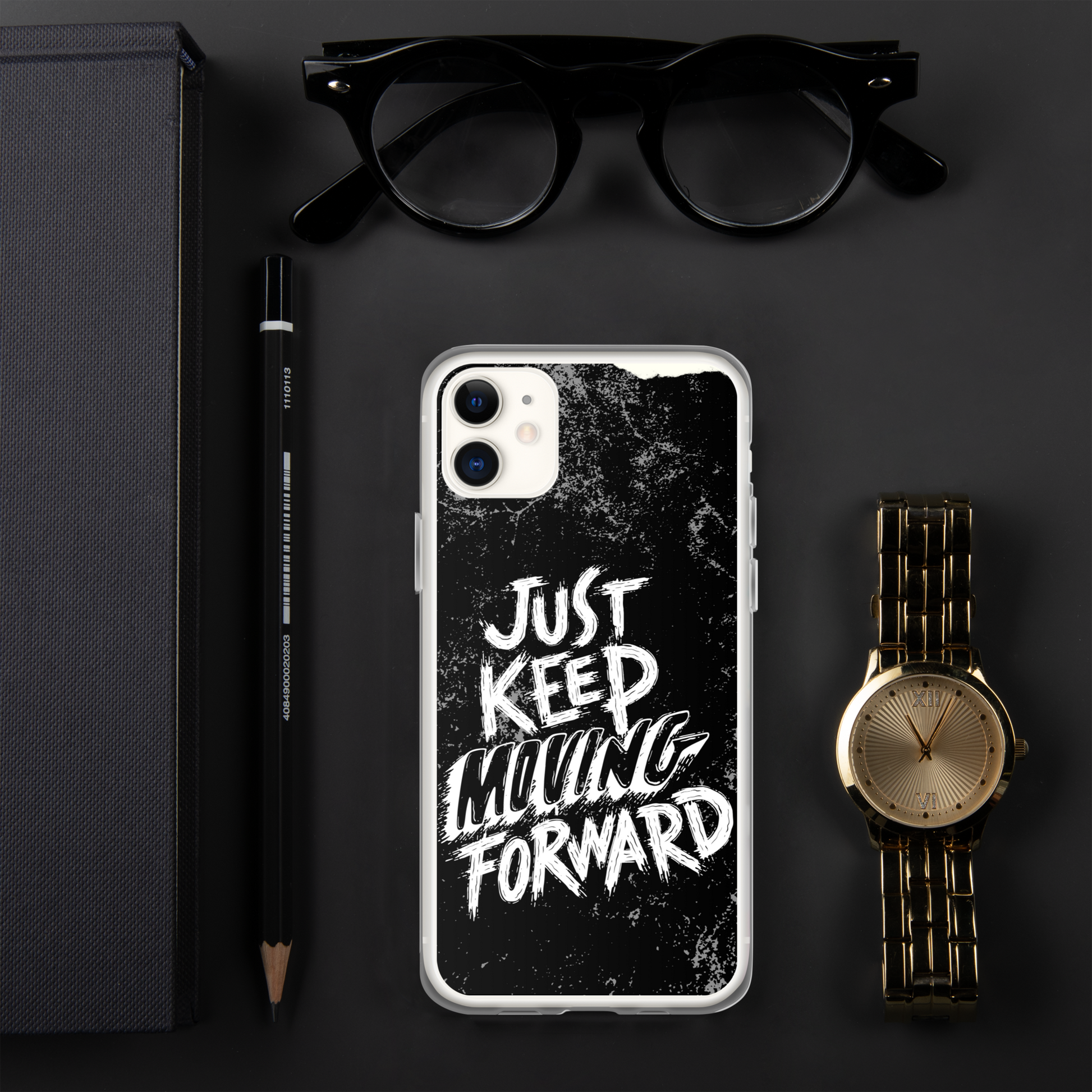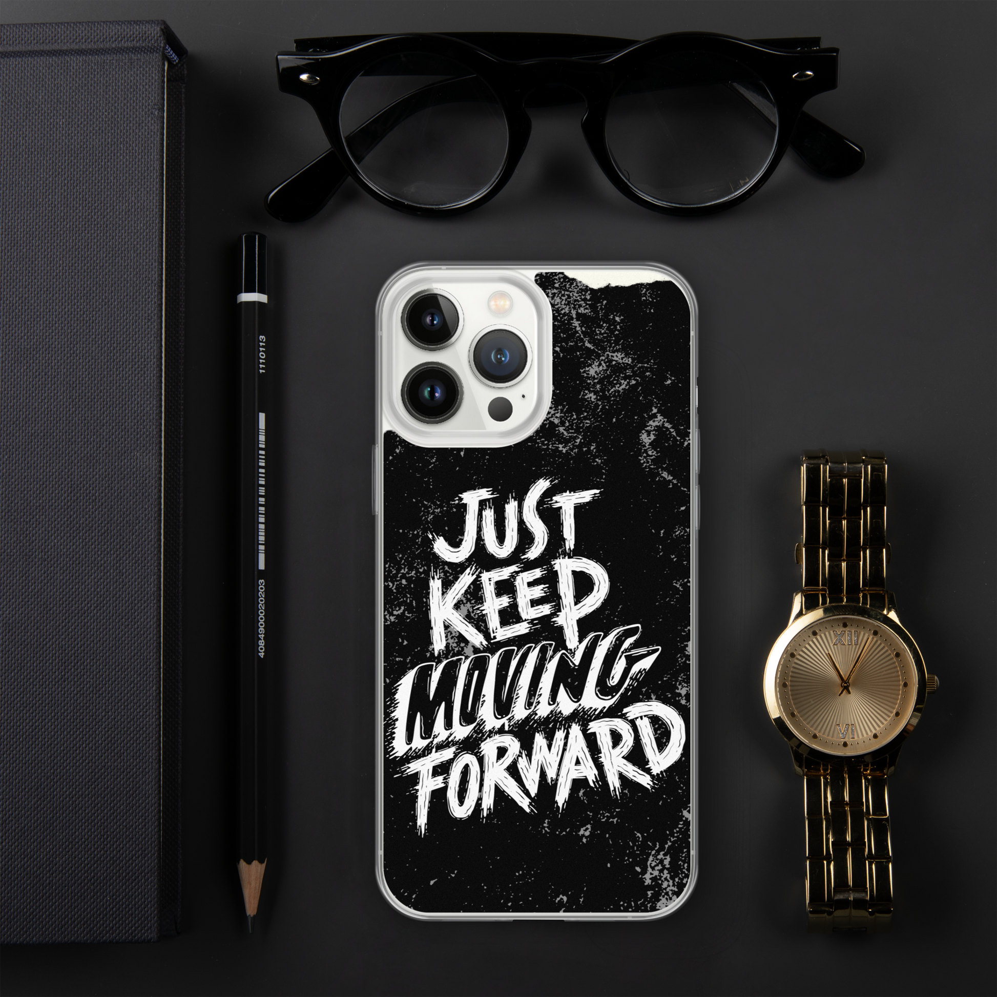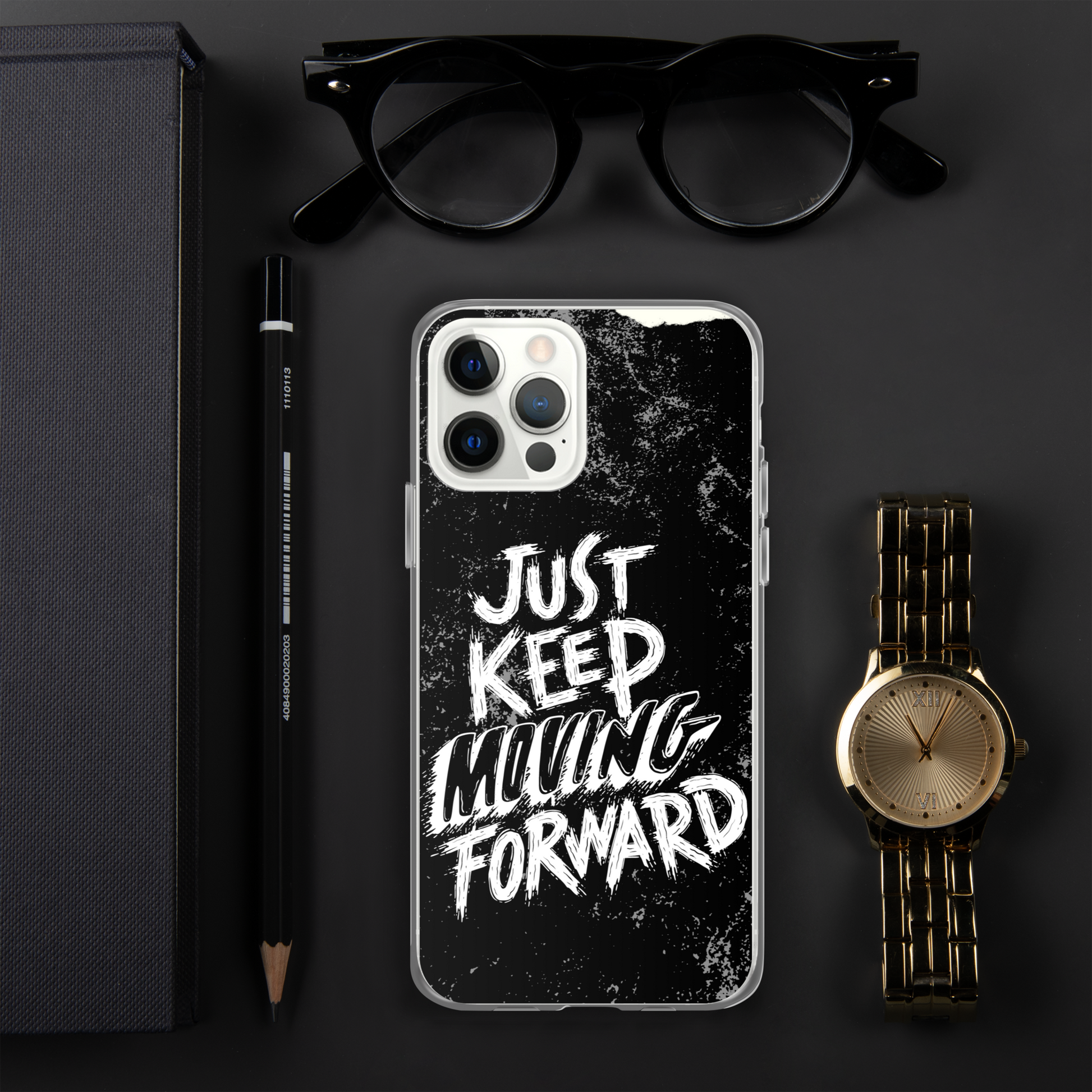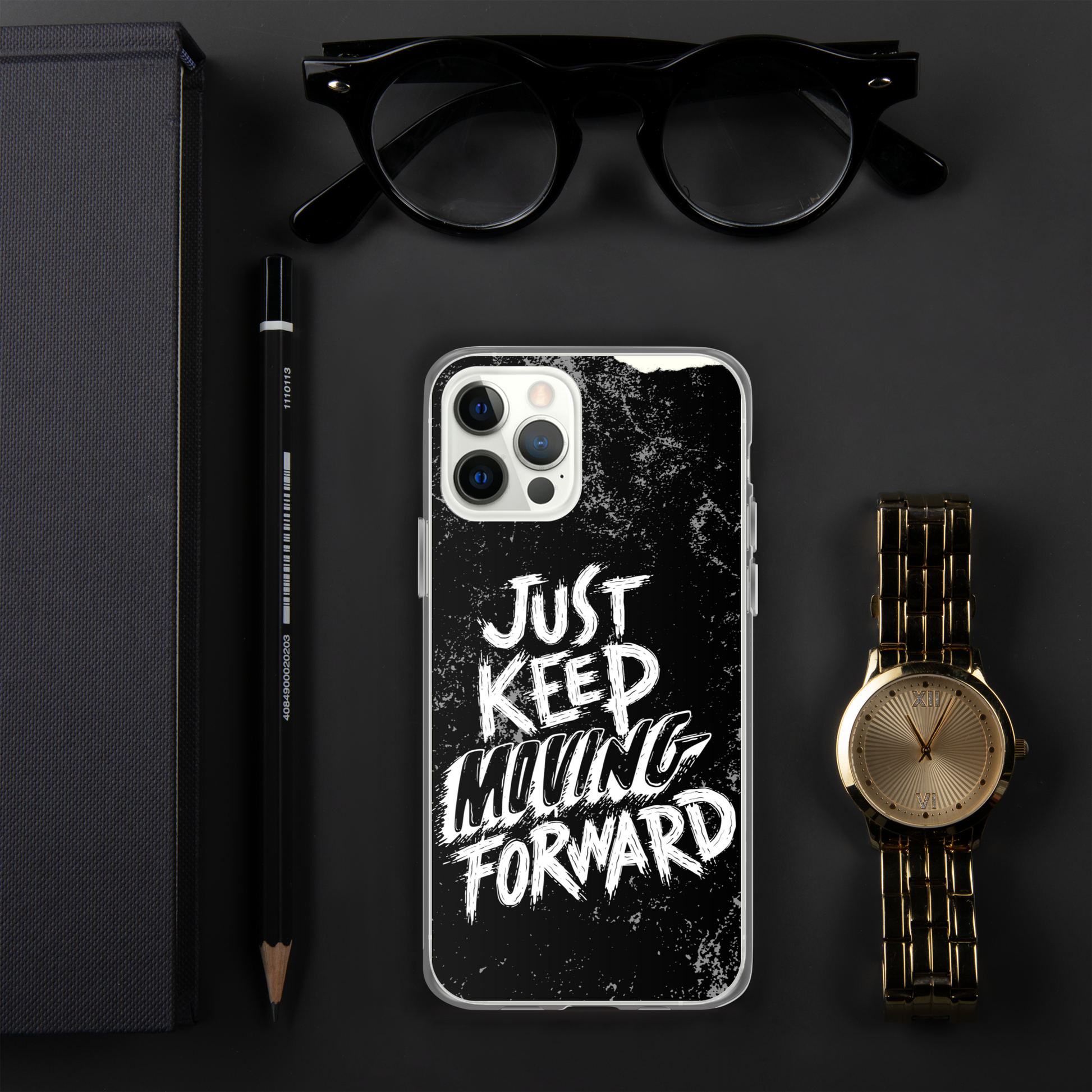 Introducing our sleek and stylish iPhone case featuring the motivational phrase "Just Keep Moving Forward." Crafted from durable materials, this case offers excellent protection for your device while reminding you to stay determined and focused on your goals.