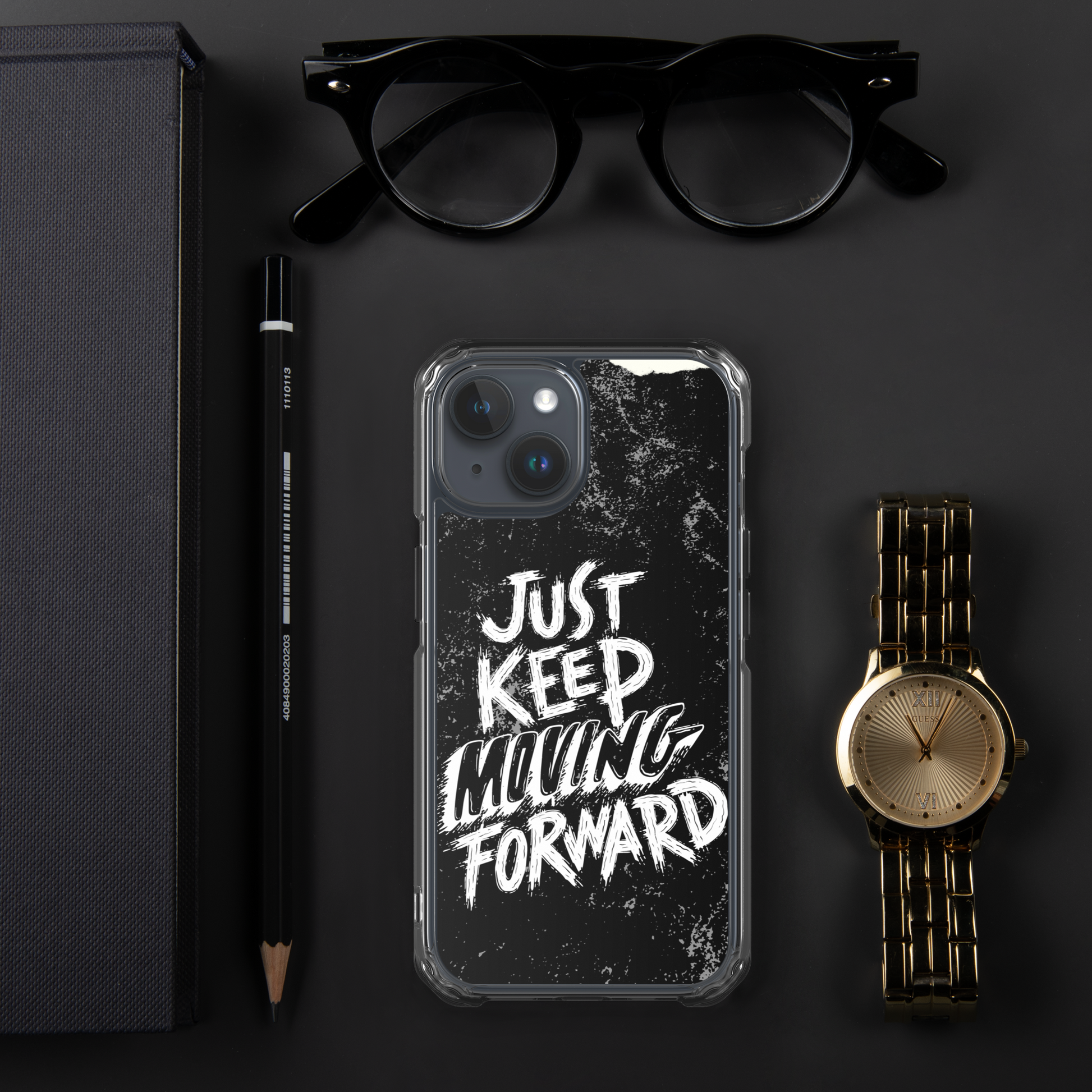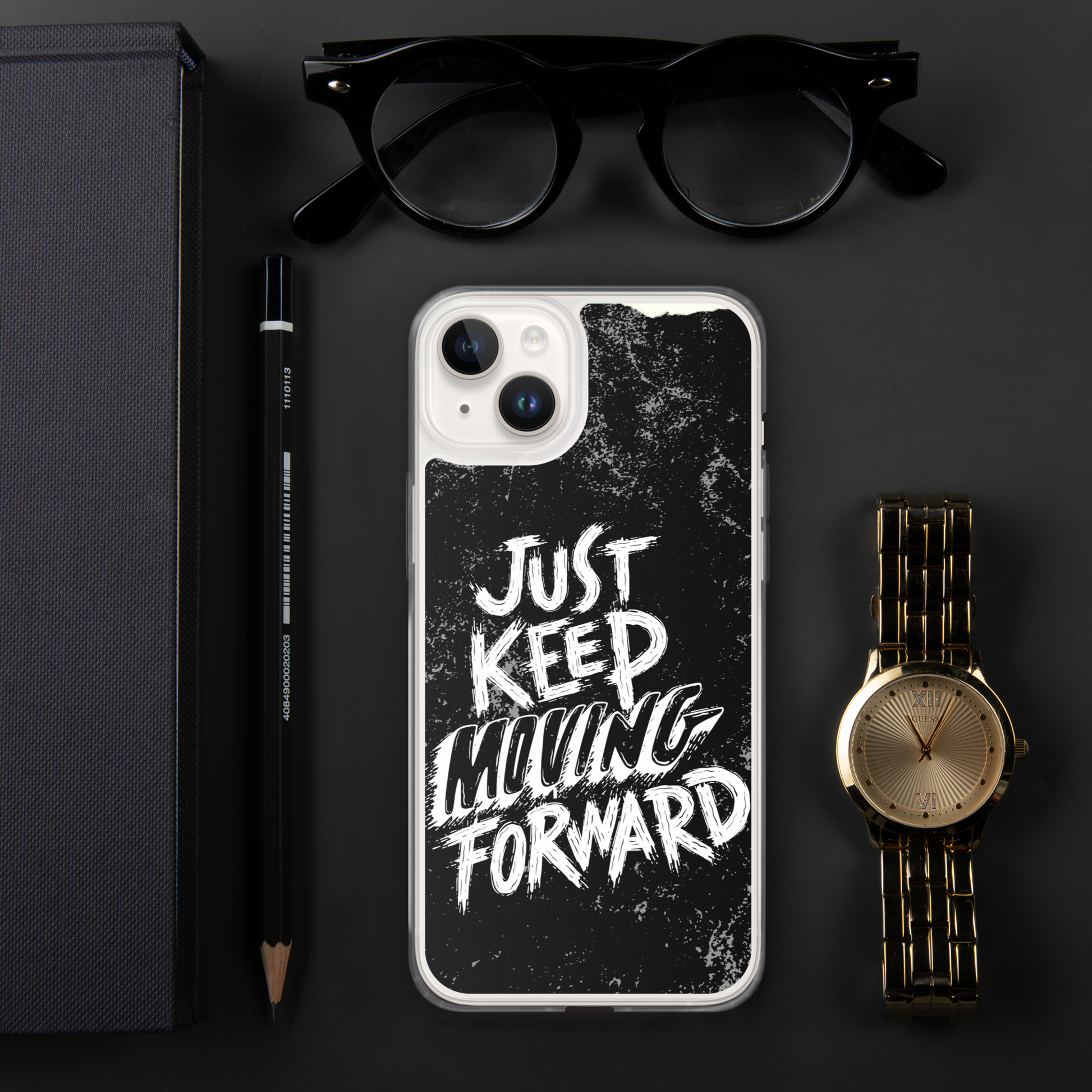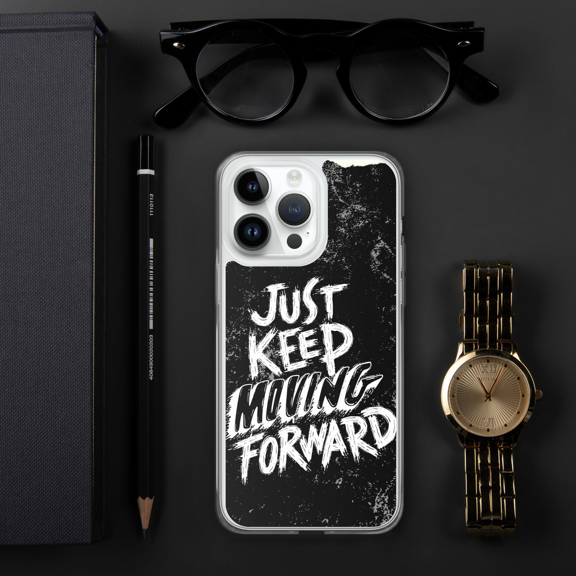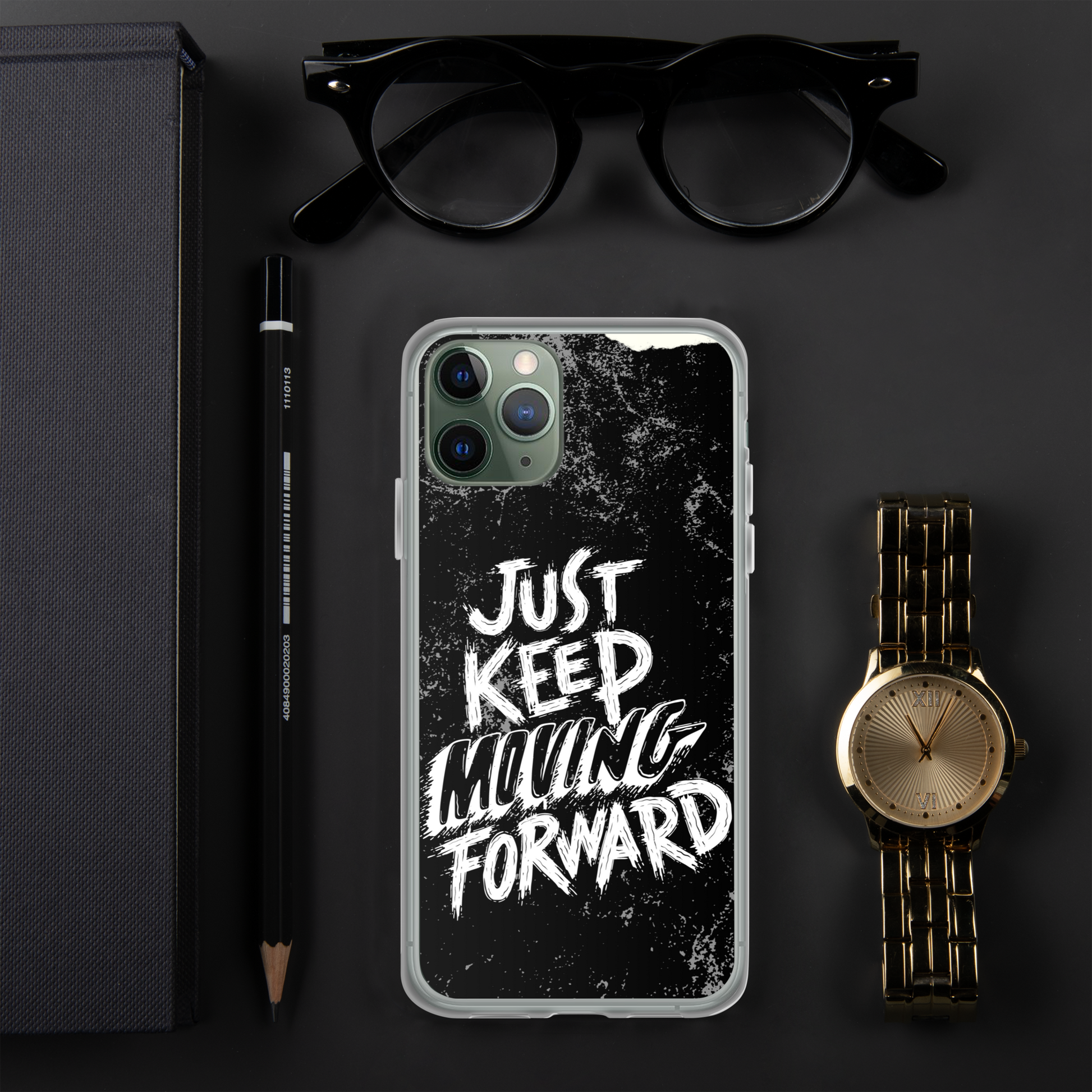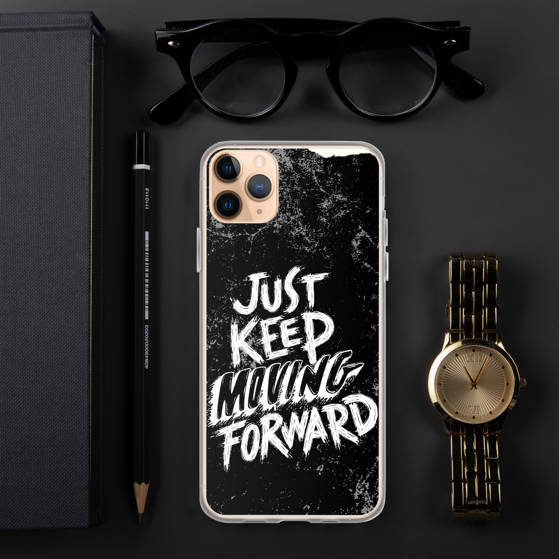 Introducing our sleek and stylish iPhone case featuring the motivational phrase "Just Keep Moving Forward." Crafted from durable materials, this case offers excellent protection for your device while reminding you to stay determined and focused on your goals.