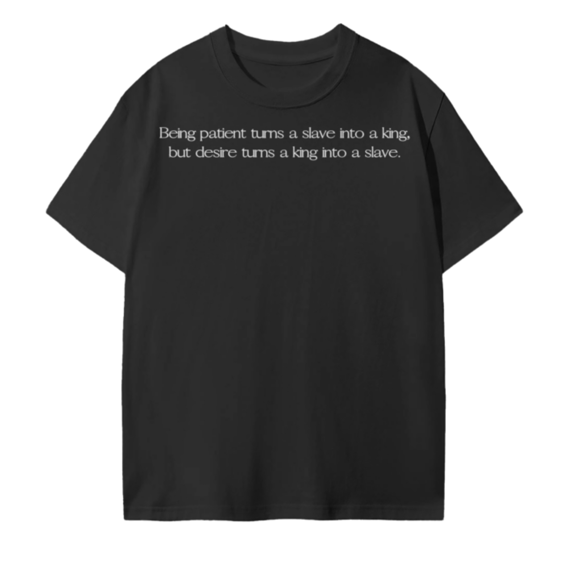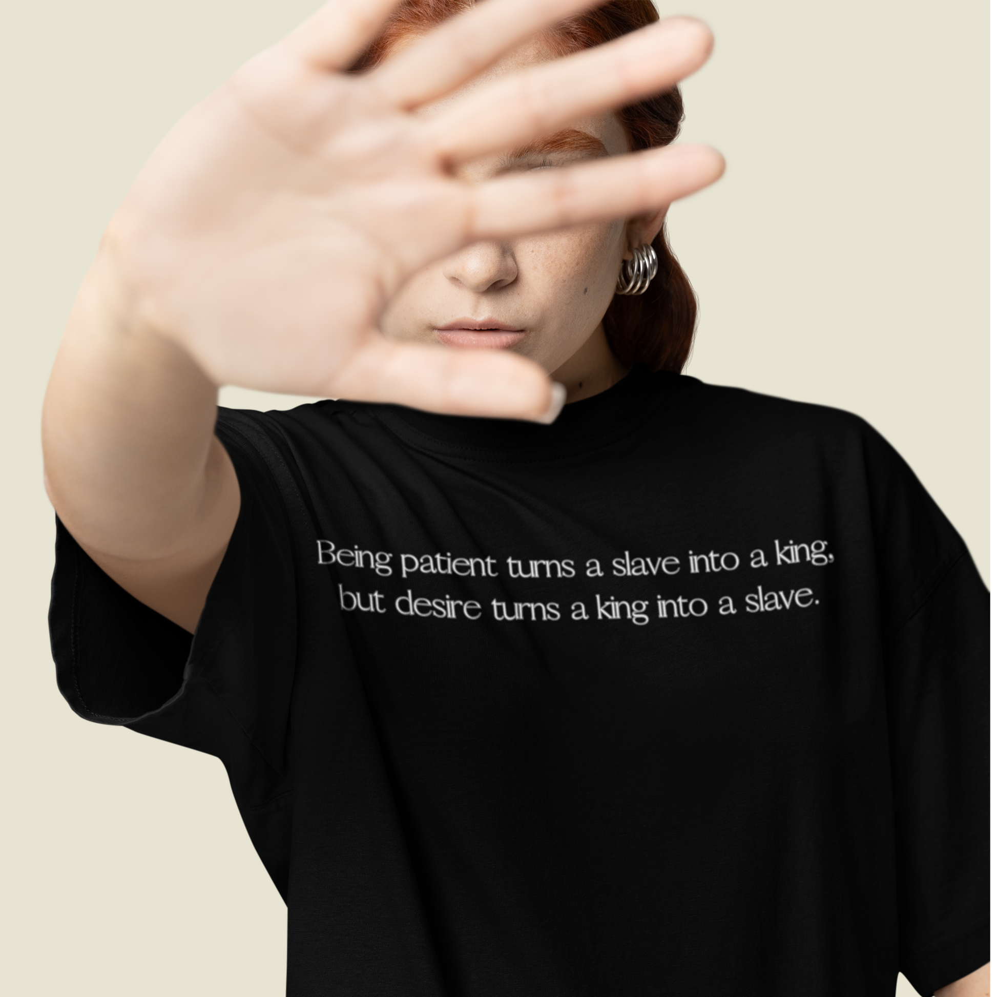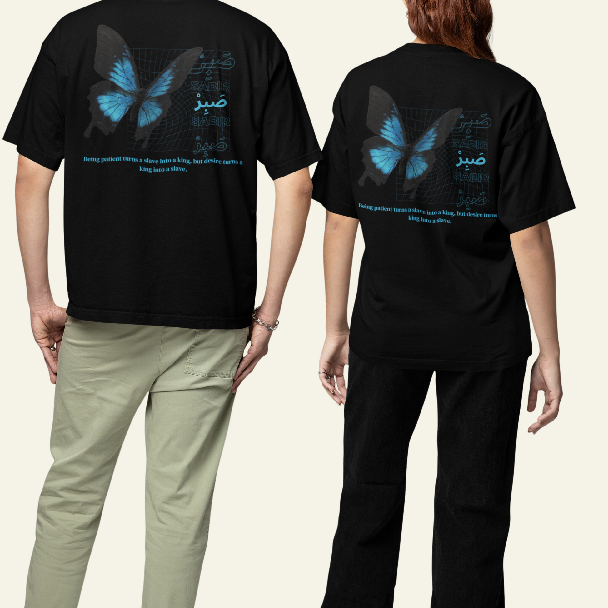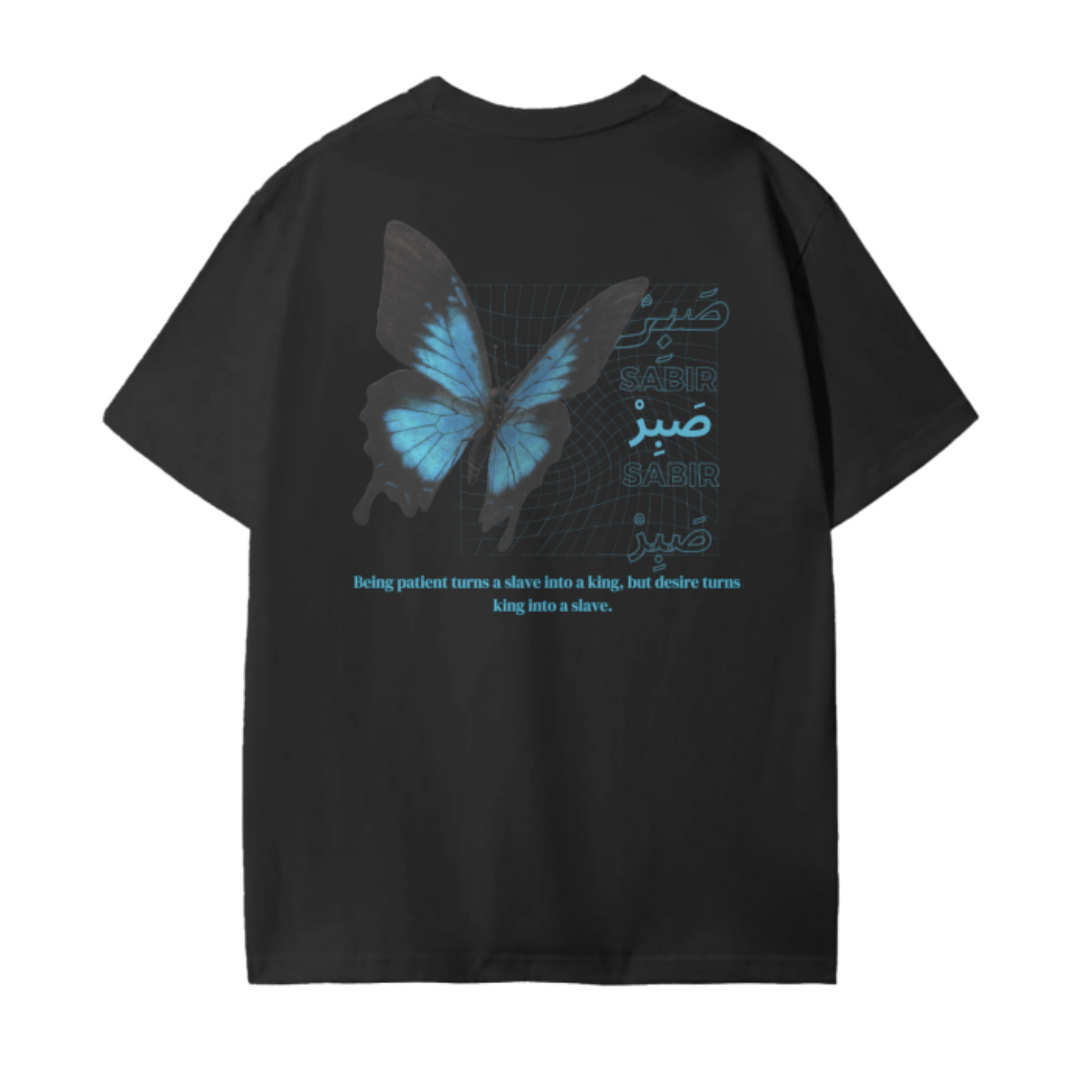 Emblazoned proudly on the front are the words "patience" in both Arabic and English – "صبر" and "patience" respectively. Each letter is a testament to the strength found in waiting and the wisdom of enduring with grace.